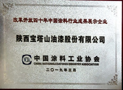 2019年3月,,寶塔山漆被中國(guó)涂料工業(yè)協(xié)會(huì)評(píng)為“改革開放四十周年中國(guó)涂料行業(yè)成果展示企業(yè)”