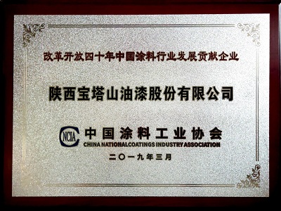 2019年3月,寶塔山漆被中國(guó)涂料工業(yè)協(xié)會(huì)評(píng)為“改革開放四十周年中國(guó)涂料行業(yè)發(fā)展貢獻(xiàn)企業(yè)”