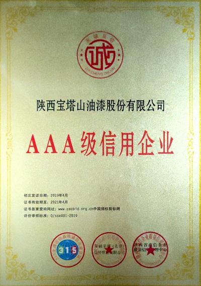 2019年4月寶塔山企業(yè)被評(píng)為“AAA級(jí)信用企業(yè)”