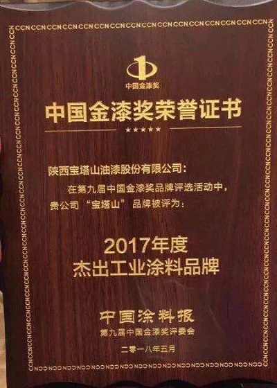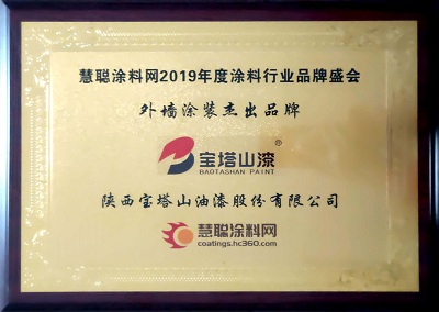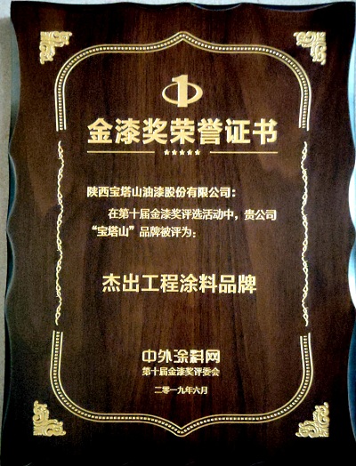 2019年6月,寶塔山漆的“寶塔山”品牌在中外涂料網(wǎng)第十屆金漆獎(jiǎng)評(píng)選活動(dòng)中被評(píng)為“杰出工程涂料品牌”