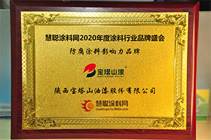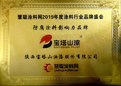 2020年7月,寶塔山漆榮獲第十六屆2020年度涂料行業(yè)影響力品牌頒獎(jiǎng)盛典活動(dòng)中榮獲”防腐涂料影響力品牌