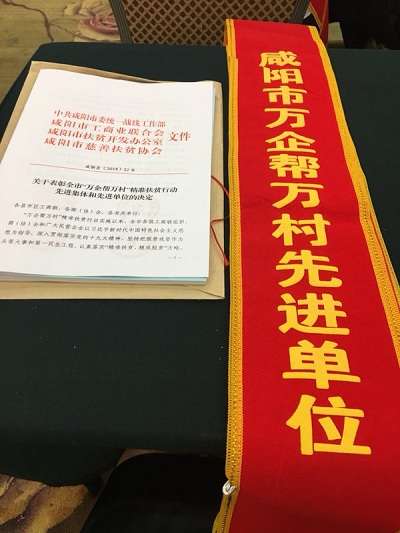 2018年8月寶塔山漆榮獲“咸陽(yáng)市萬(wàn)企幫萬(wàn)村先進(jìn)單位”
