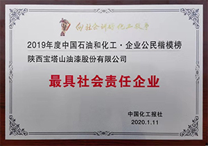 2020年1月11日,寶塔山漆被評(píng)為2019年度最具社會(huì)責(zé)任企業(yè)