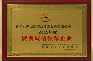 2020年10月,寶塔山漆獲評(píng)陜西省誠(chéng)信領(lǐng)軍企業(yè)