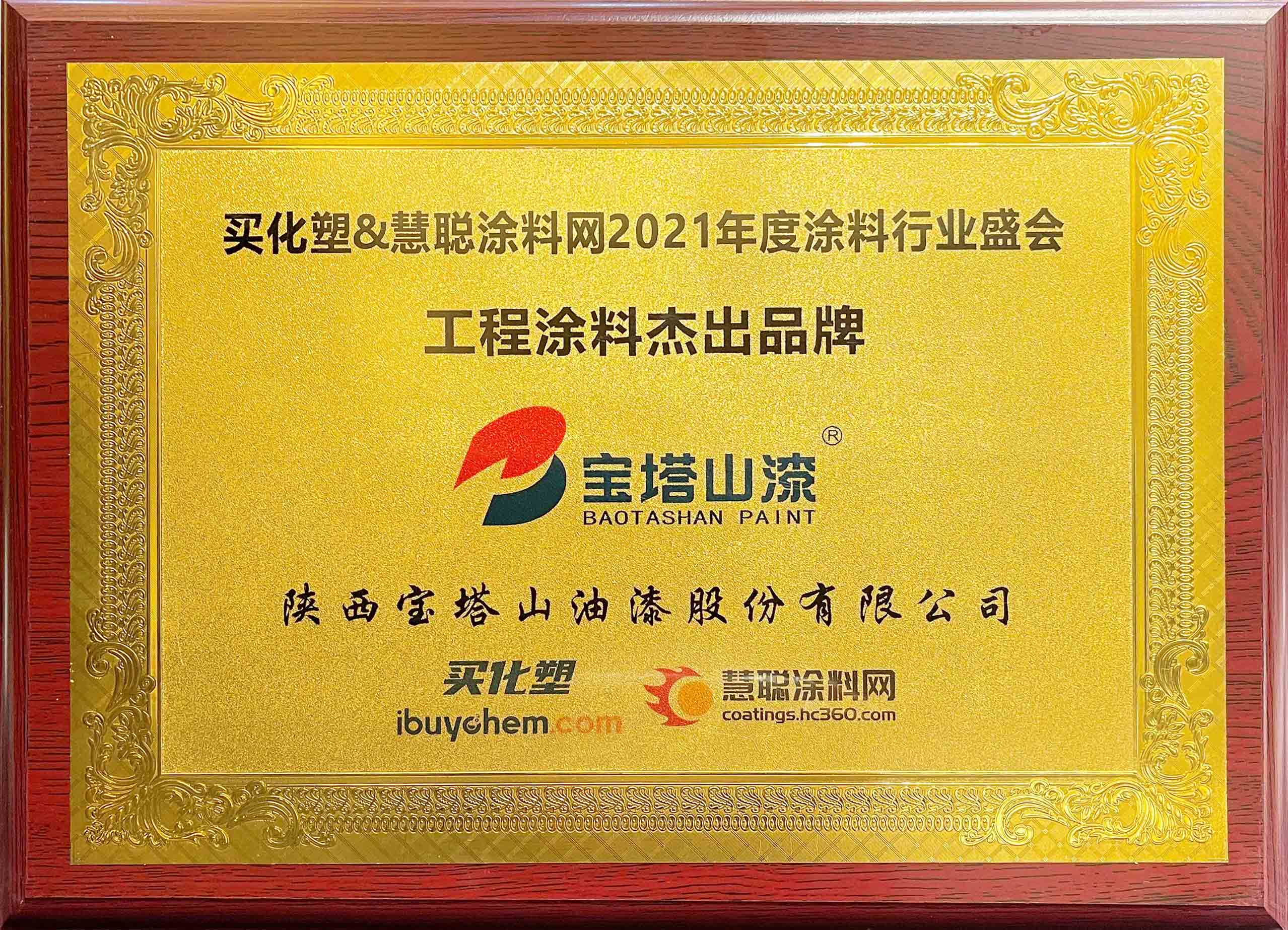 2021年6月26日,寶塔山漆榮獲2021 年度“工程涂料杰出品牌”