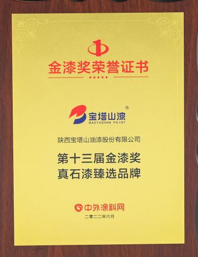 2022年6月,寶塔山漆榮獲第十三屆金漆獎(jiǎng)“真石漆臻選品牌”。