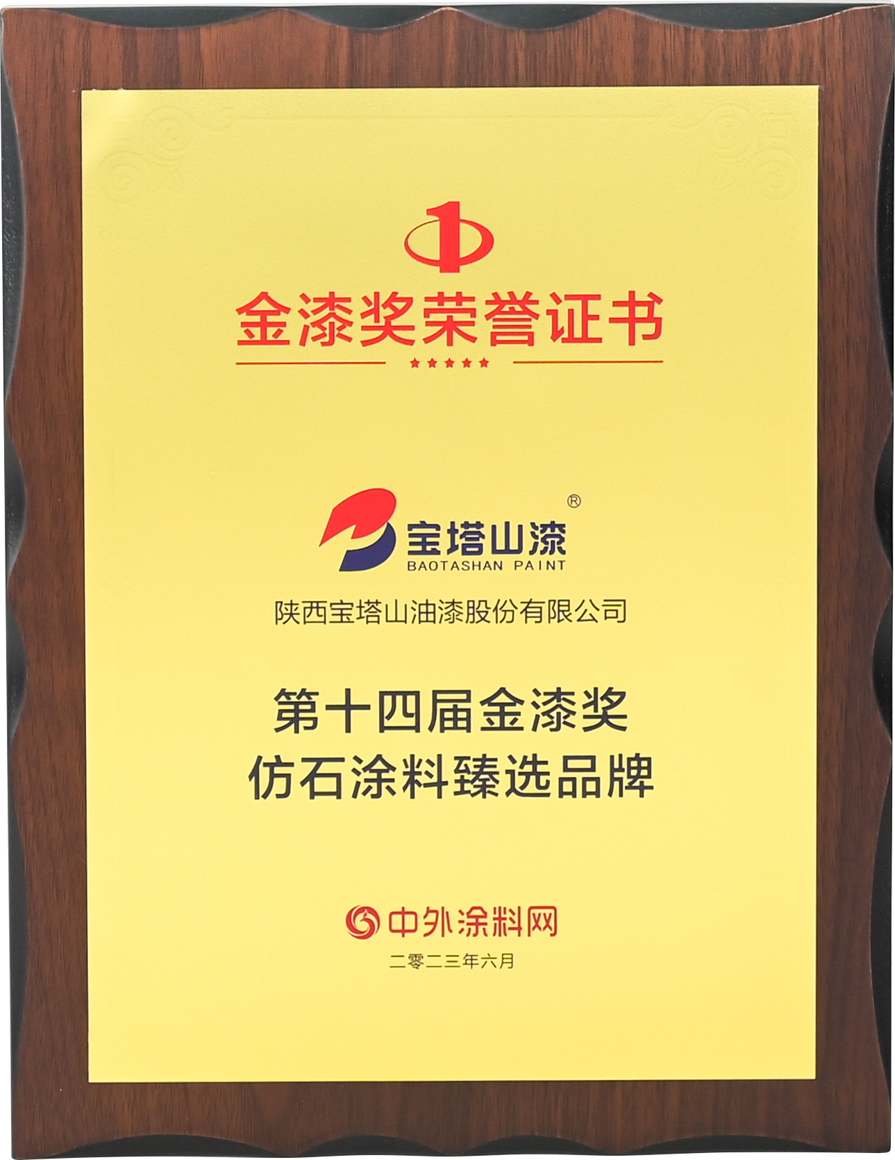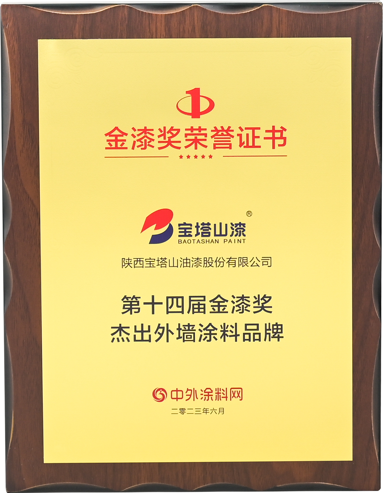 2023年6月,寶塔山漆榮獲“第十四屆金漆獎(jiǎng)杰出外墻涂料品牌”。