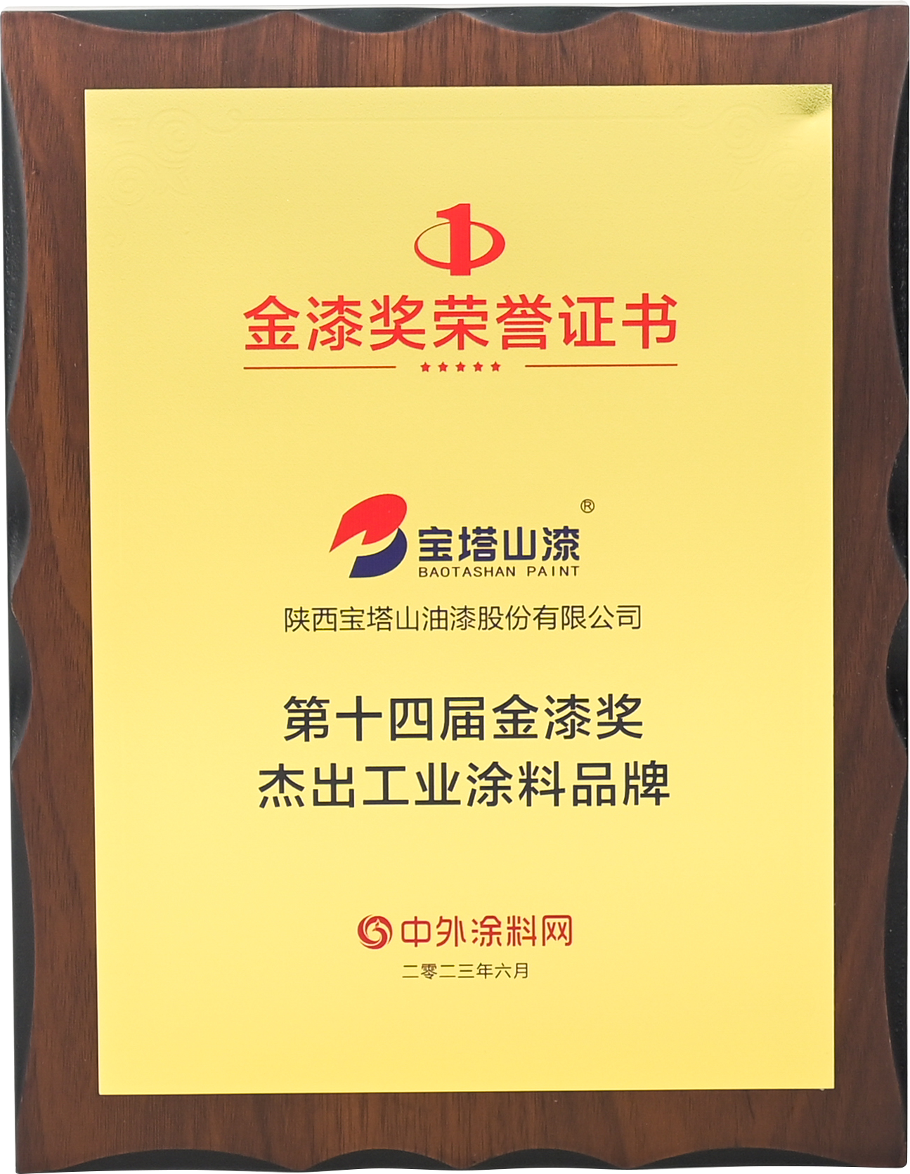 2023年6月,寶塔山漆榮獲“第十四屆金漆獎(jiǎng)