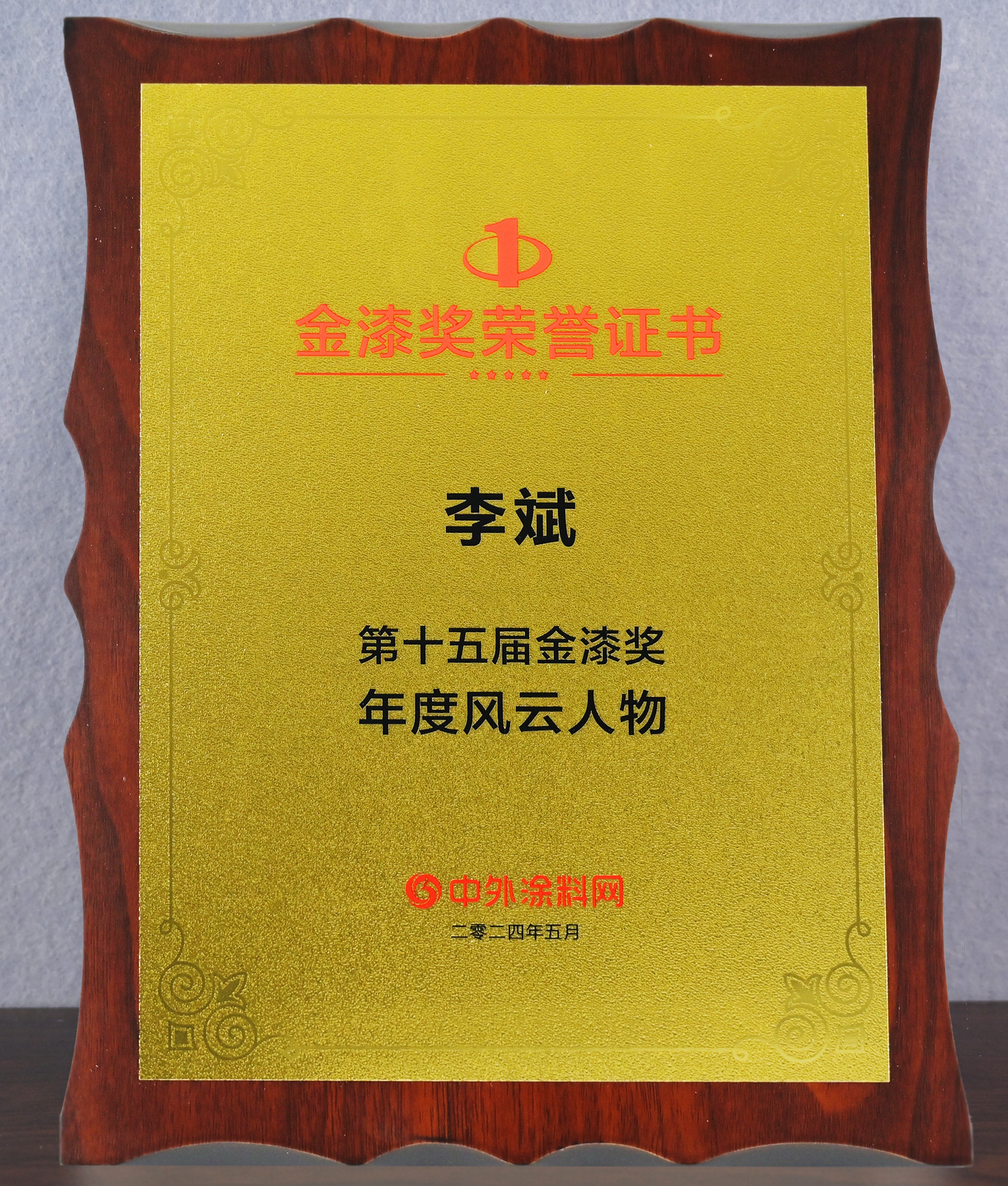 2024年5月,寶塔山漆李斌同志在中外涂料網(wǎng)第十五屆金漆獎(jiǎng)評(píng)選活動(dòng)中被評(píng)為“年度風(fēng)云人物”。