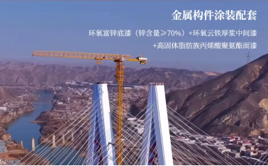 環氧富鋅底漆(鋅含量≥70%)+環氧云鐵厚漿中間漆+高固體脂肪族丙烯酸聚氨酯面漆的長效型涂裝體系,為桑園子黃河大橋風嘴結構、防撞欄桿、檢修欄桿等鋼構件提供了強有力的保護,延長了橋梁的使用壽命,減少了后期維護成本。