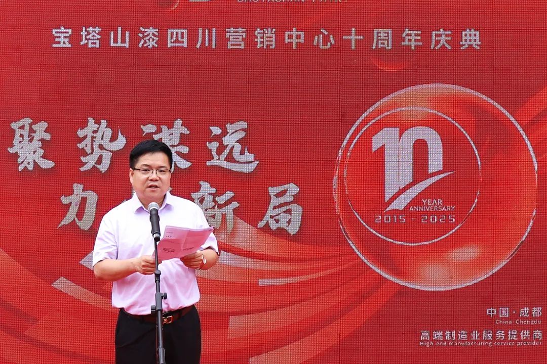寶塔山新材董事長楊鵬剛的致辭更是將慶典推向了高潮,楊總充分肯定了四川營銷中心以業(yè)務(wù)為中心的經(jīng)營理念。他表示,過去十年,四川營銷中心的業(yè)績達到了公司對川渝地區(qū)的階段性預(yù)期,希望四川營銷中心繼續(xù)深化服務(wù)升級,以客戶滿意度為核心驅(qū)動力,開啟下一個高質(zhì)量發(fā)展的十年。